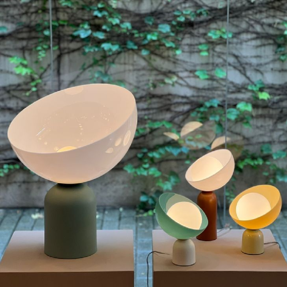 pendentes e arandelas, a coleção se destaca pela cúpula esférica com um corte