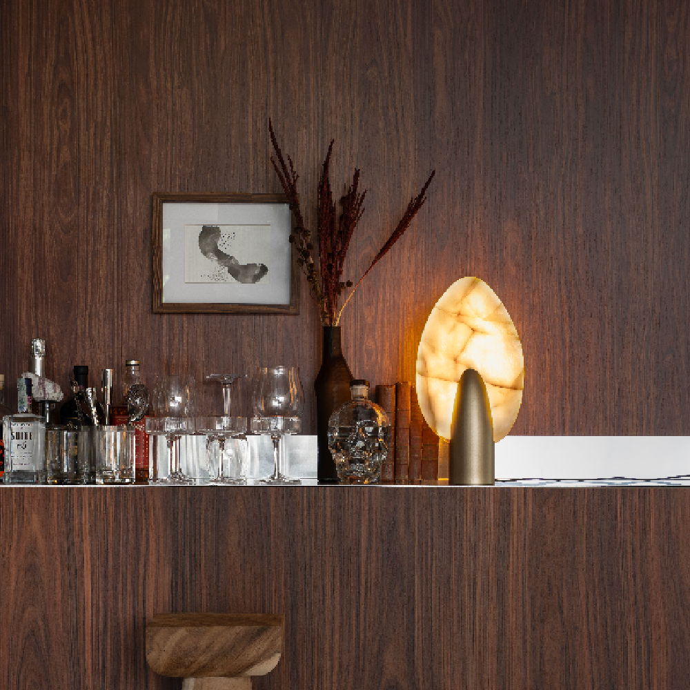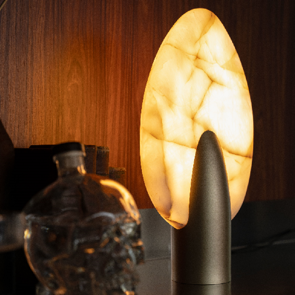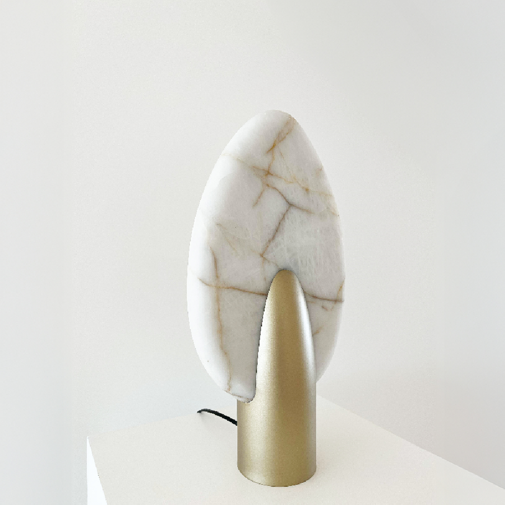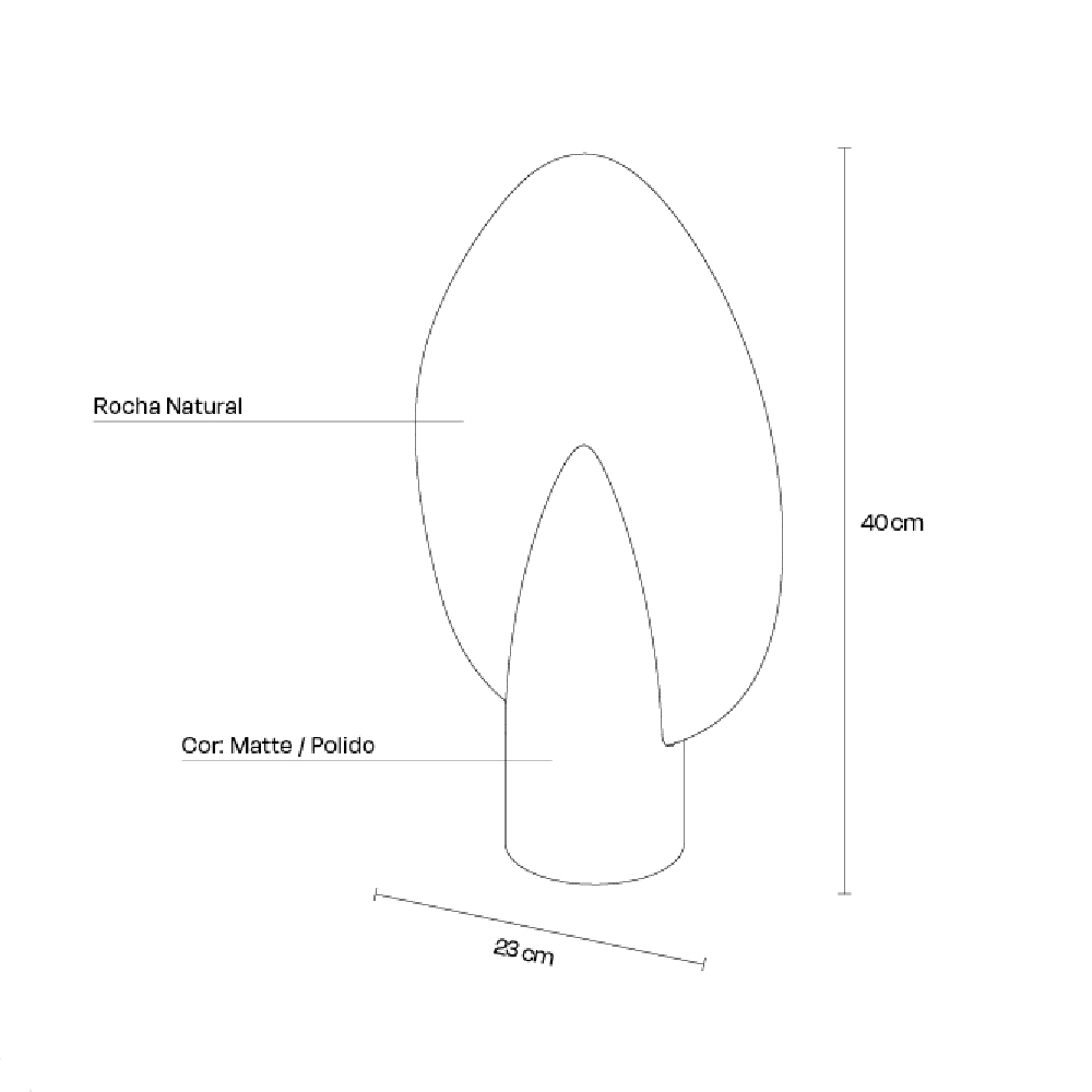 cúpula esculpida em rocha natural e base metálica. Uma peça escultórica que